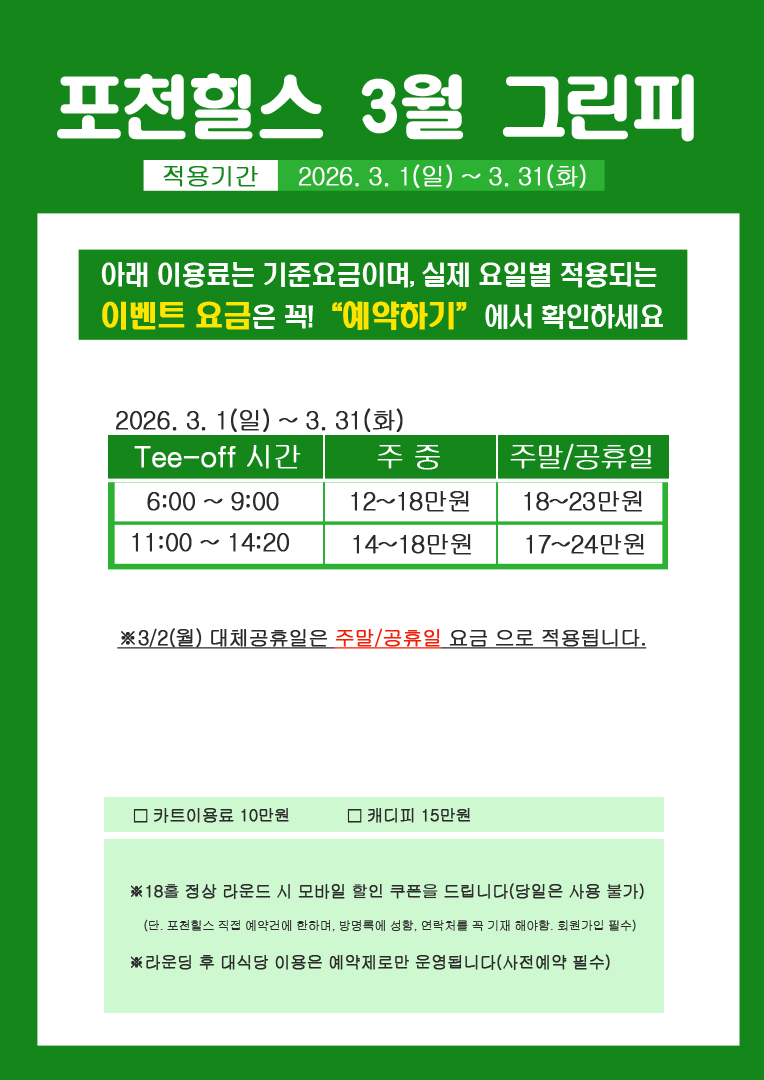 2026년 3월 그린피 안내
